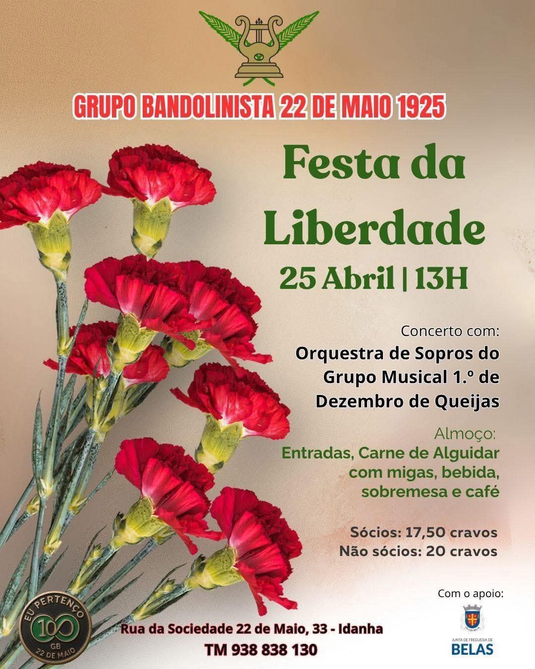 Concerto da Orquestra de Sopros do Grupo Musical 1.º de Dezembro de Queijas na "Festa da Liberdade" no Grupo de Bandolinista 22 de Maio de 1925, após um almoço de convívio pela liberdade. |
